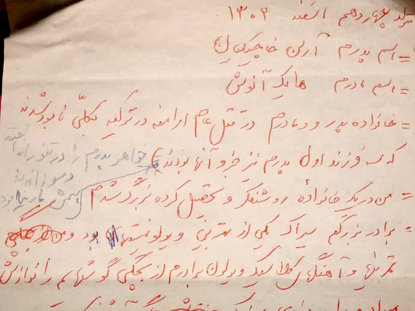 همان زمان در تماس با ادوین عزیز متوجه شدم خانواده زندهیاد خاچیکیان بر مبنای دستخط موجود، جشن تولد استاد را هر سال در میانه زمستان برگزار میکردهاند اما در نهایت به دلیل اطلاعات ثبتشده در شناسنامه (که بههرحال یک سند تأییدشده و رسمی است) تصمیم گرفتم تاریخ موجود در شناسنامه را ملاک قرار دهم و از شانزدهم فروردین ۱۳۰۲ برای اشاره به تاریخ زادروز ایشان استفاده کنم که بههرحال زمان مستدل و مستندتری است.
