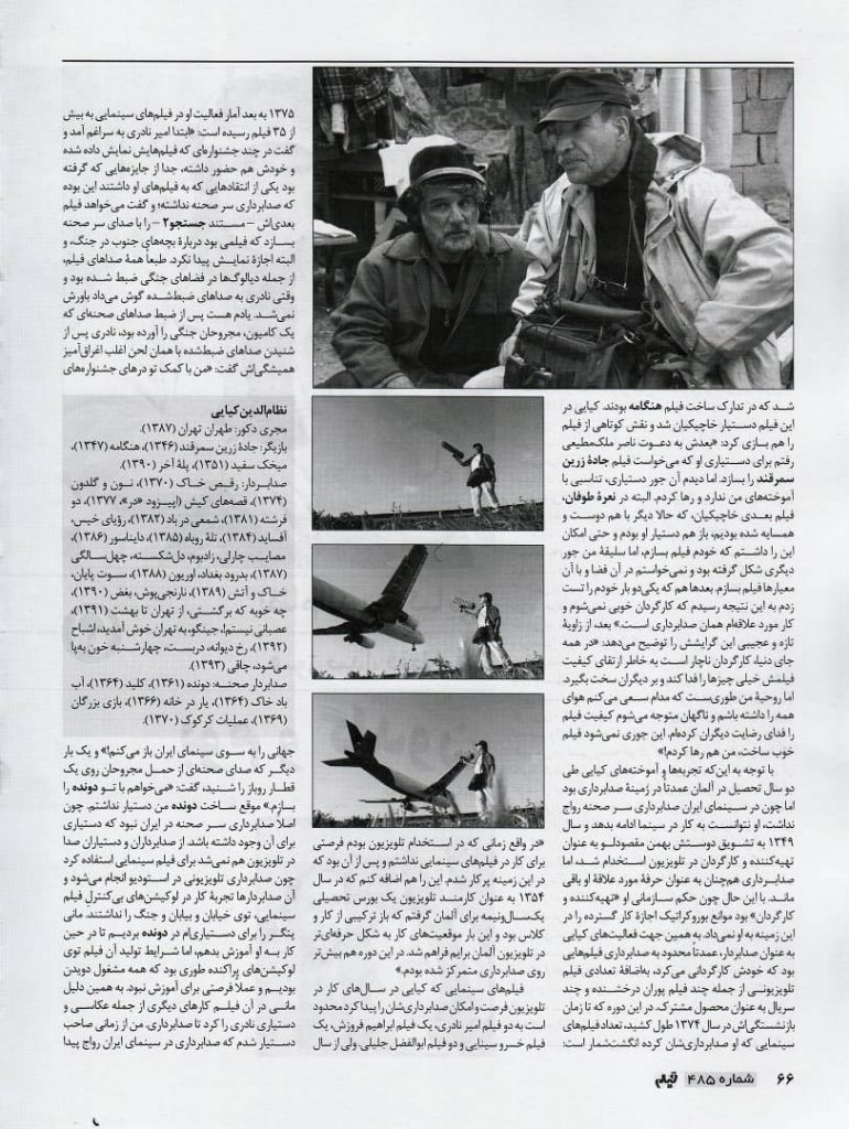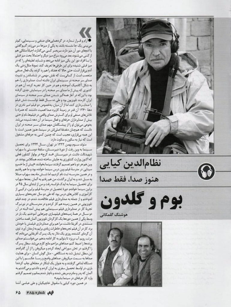 نظامالدین کیایی امروز در ۸۲ سالگی درگذشت. آنقدر شور و انرژی داشت که جوانتر از سنش به نظر میرسید و چنان همیشه سرزنده بود که گویی با مرگ بیگانه بود. به همین دلیل ابتدا خبر مرگش باورم نشد، اما متأسفانه واقعیت دارد. در هر جمعی که بود همیشه در مرکزش قرار میگرفت، بس که بیقرار و شوخ بود. کار اصلیاش صدابرداری سرصحنه بود اما چندتا نقش کوتاه هم بازی کرد و نکته مهم این بود که به دلیل روحیهاش اغلب نقش آچار فرانسه و مشکلگشای گروه را هم پیدا میکرد؛ چه مشکل فنی و چه غیرفنی.
